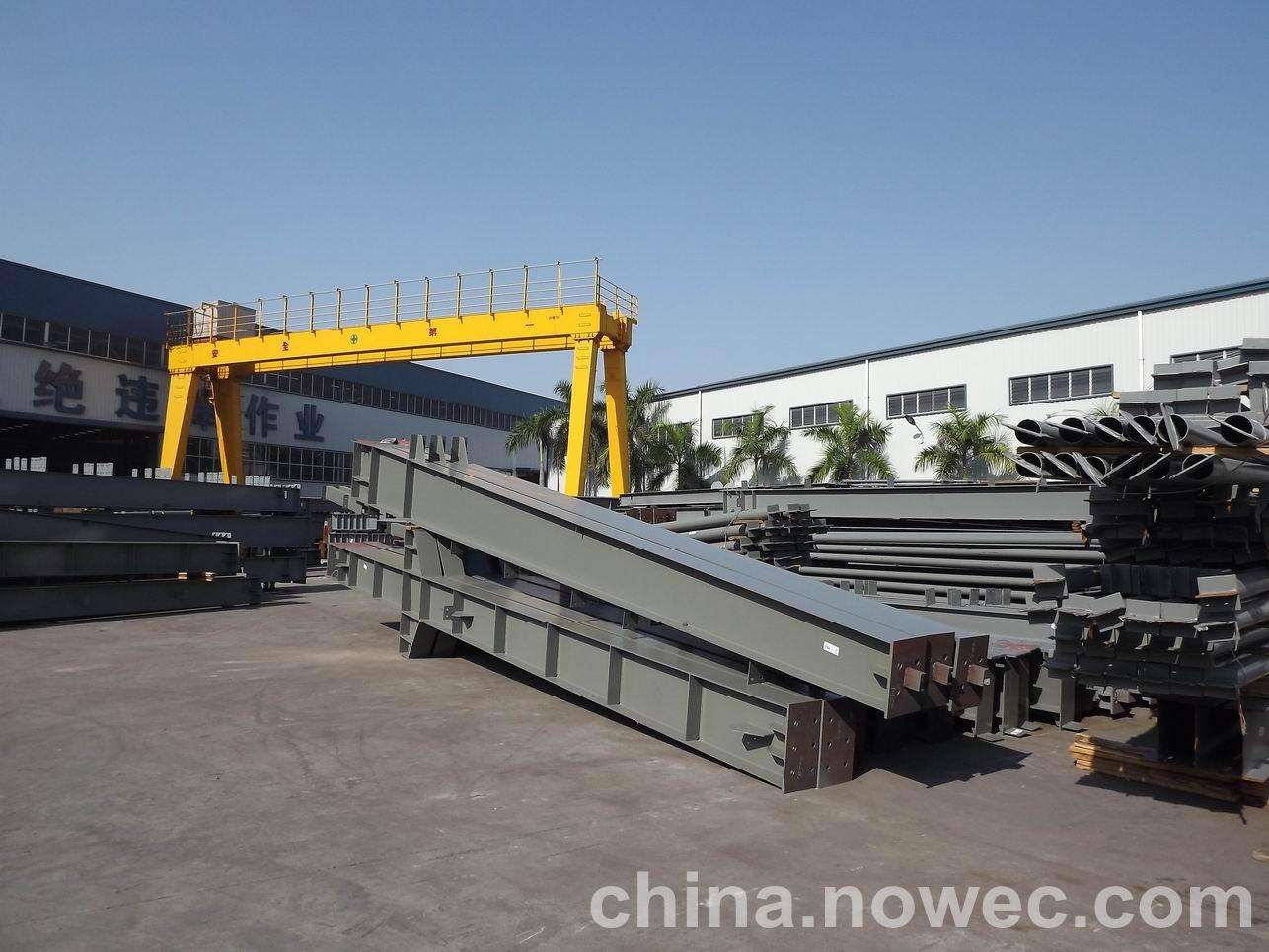 条状单元一般沿长跨方向分割,其宽度约为1~3个网格,其长度为l2或l2/2(l2为短跨跨距)。块状单元一般沿鄂州网架平面纵横向分割成矩形或正方形单元。每个单元的重量以现有起重机能胜任为准。条(块)与条(块)之间可以直接拼装,也可空一网格在高空拼装。由于条(块)状单元是在地面拼装,因而高空作业量较高空散装法大为减少,拼装支架也减少很多,又能充分利用现有起重设备,故较经济。这种安装方法适用于分割后网架的钢度和受力状况改变较小的各类中小型网架,如两向正交正放四角锥、正放抽空四角锥等网架。